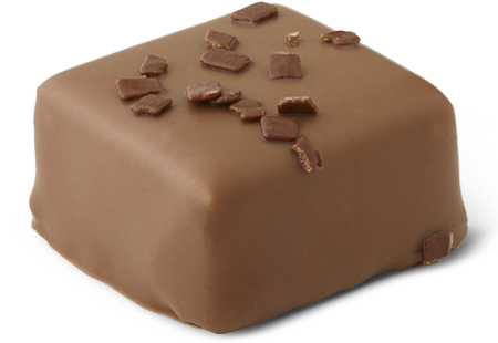 Malted Milk Chocolate Ganache Topped with Candied Cacao Nibs